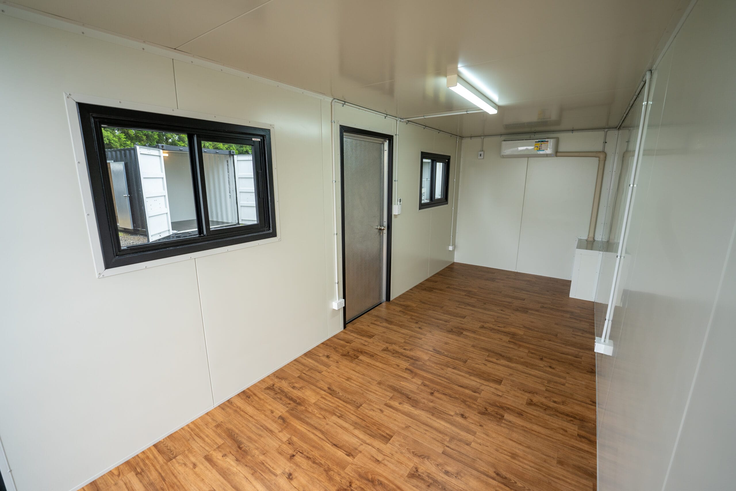 A shearer and staff breakroom container is a modified shipping container that serves as a comfortable break area for workers. It’s often used on farms, remote worksites, and construction sites where staff need a sheltered space for rest, meals, or meetings.